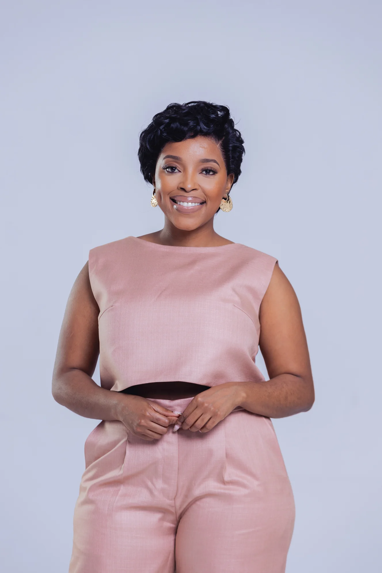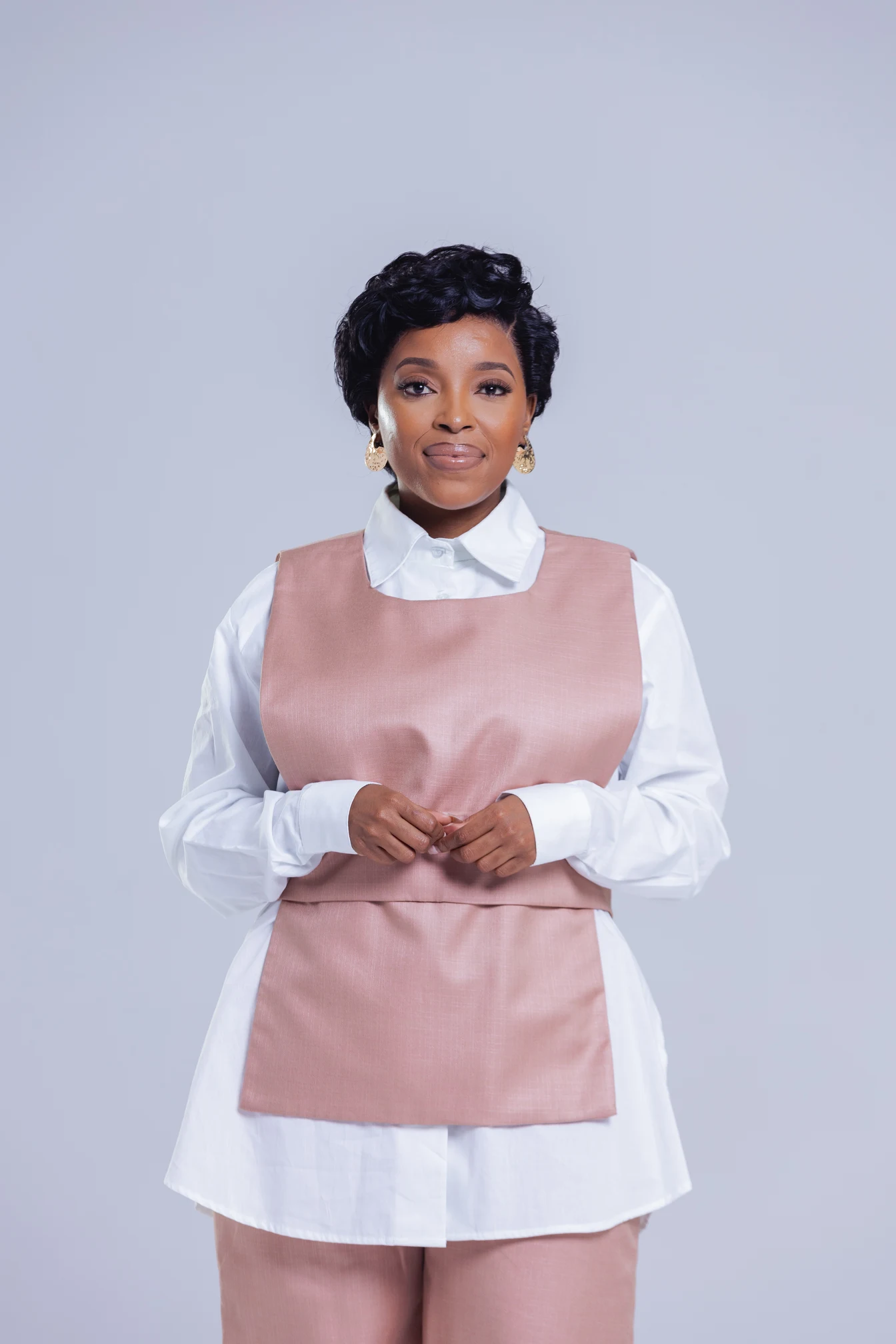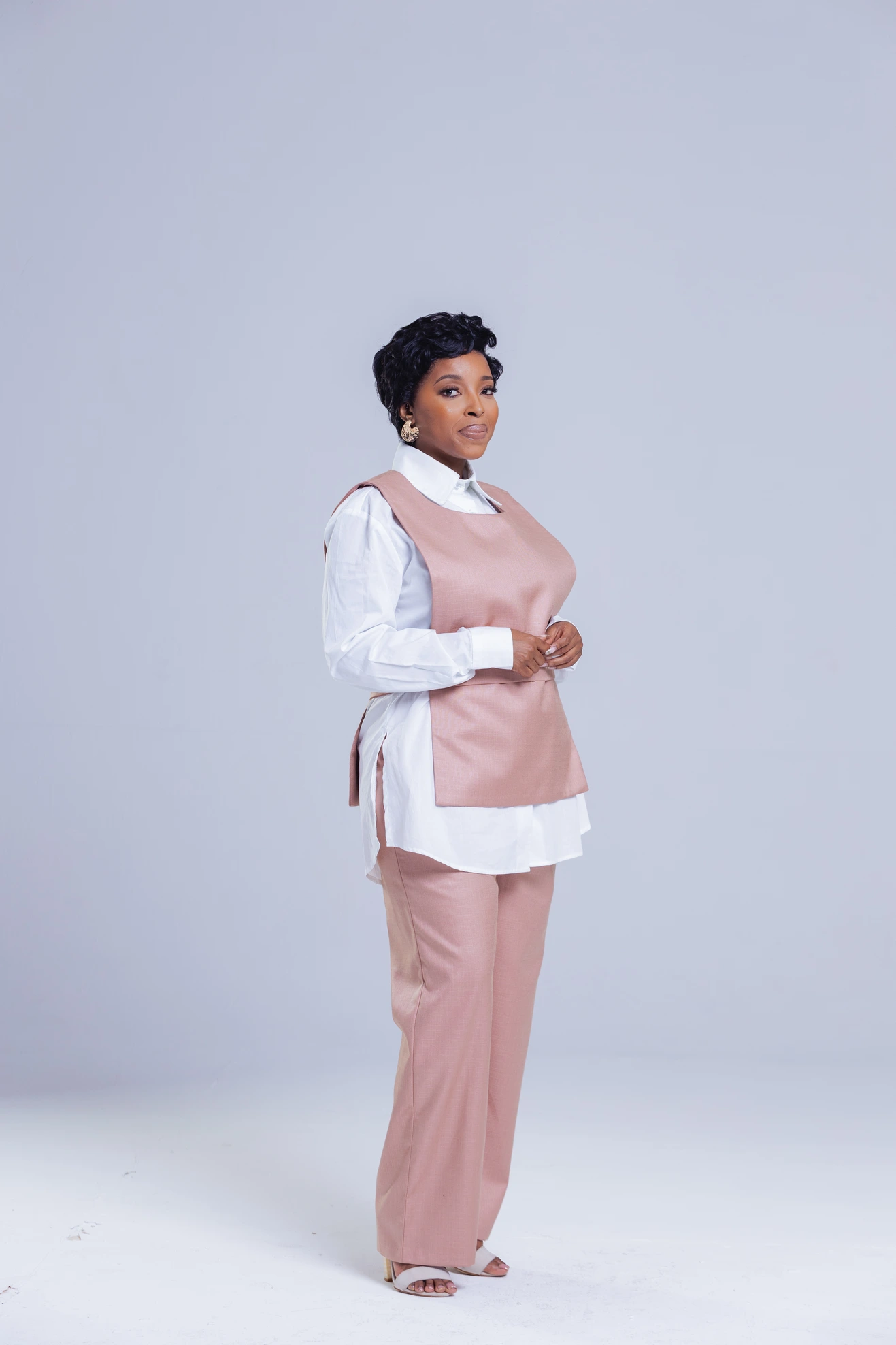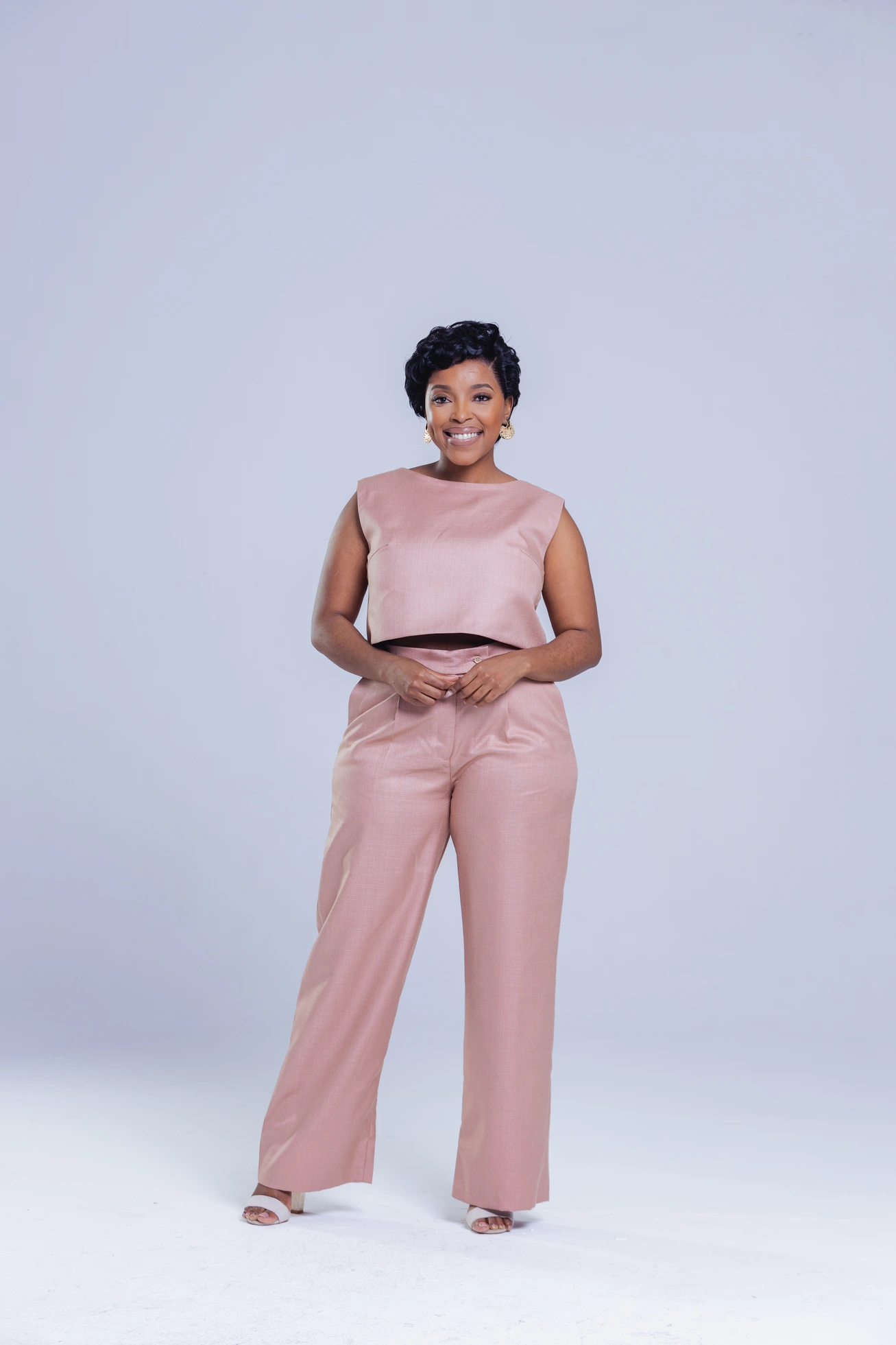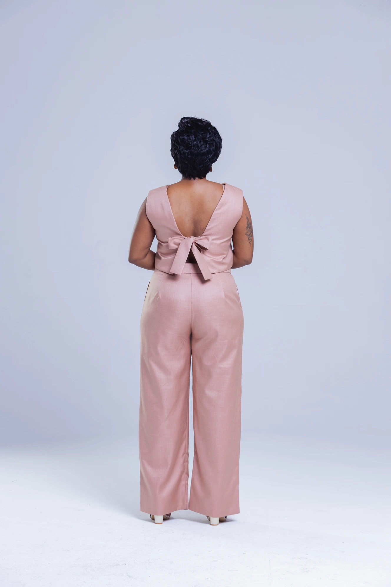 Elevate your wardrobe with the Rose Nude Elegance Ensemble — a masterful blend of structure, softness, and timeless sophistication. Featuring a structured crop top and wide-leg trousers in a delicate rose-nude hue.